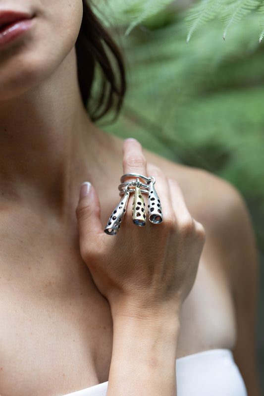 Anillo de labios en plata 925, para usar en dos dedos. Pieza de la colección Bésame Mucho