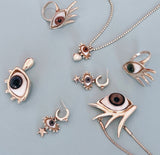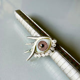Maxi anillo de ojo fabricado en plata con incrustaciones de zirconias. El ojo es una pieza de cristal hecho de manera artesanal. Lo hay tambien en baño de oro de 18k. Pieza de la colección PIXIE