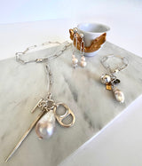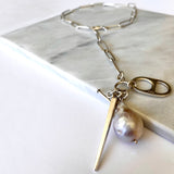 Collar de eslabones largos, perla barroca y charms diseñados exclusivamente para la colección, todos los componentes en plata 925. Pieza de la colección BARROCA.